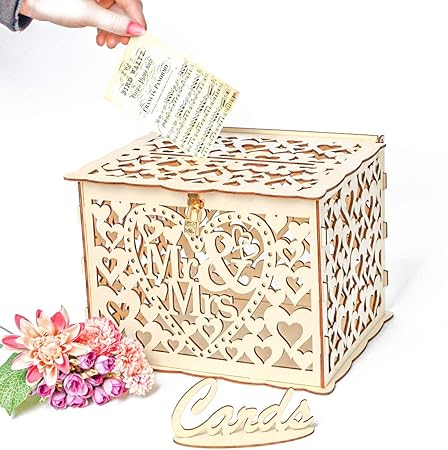 How To Make Gift Card Boxes For Weddings : Cysky Wooden Wedding Card Box Hollow Wedding Money Box Large Rustic Wood Diy Gift Card Boxes With Lock And Card Sign For Reception Weddings Anniversary Party A Party Supplies Art Craft / Shop this wedding card box idea: